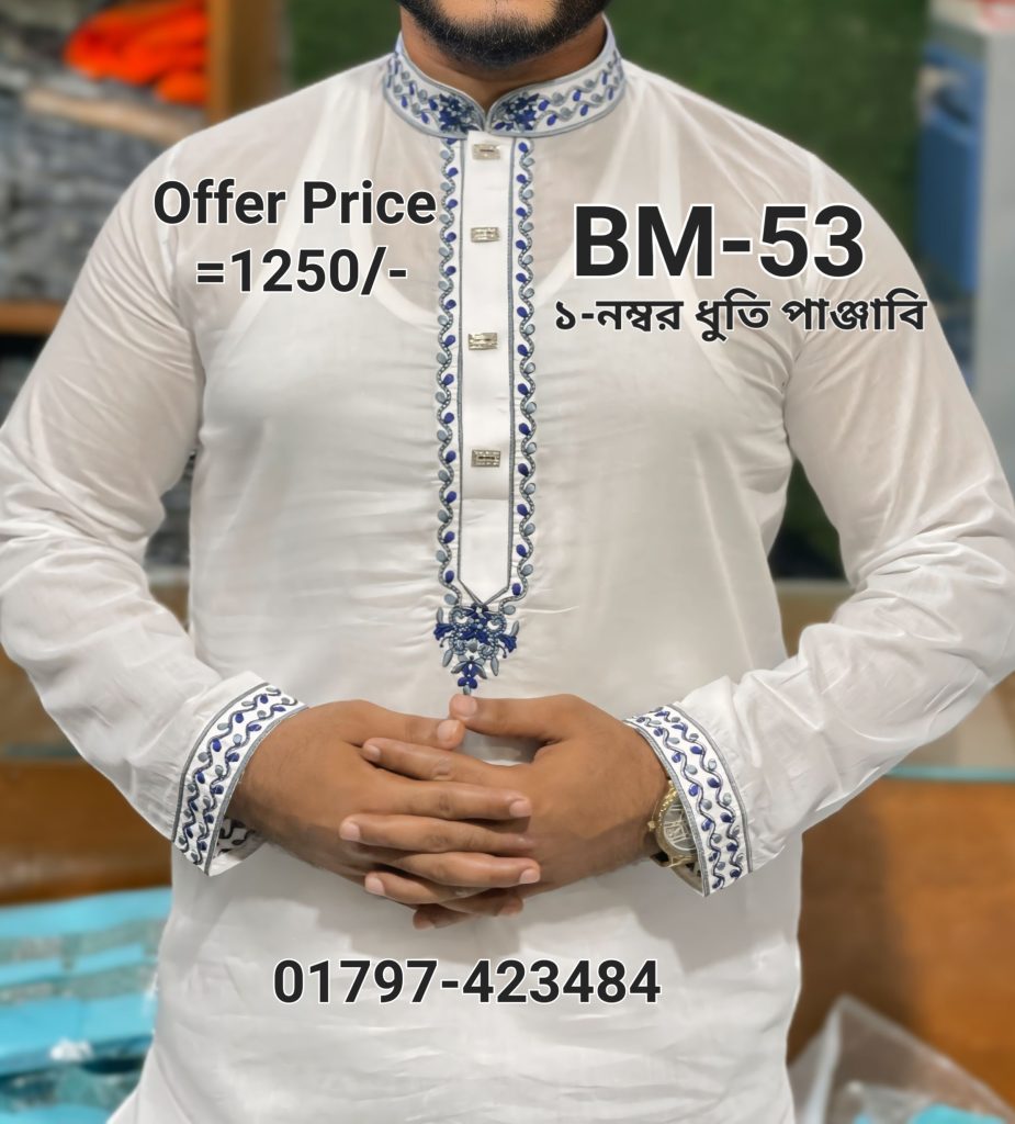স্পেশাল ধুতি পাঞ্জাবি=BM-53 (ব্লু সুতার কাজ)