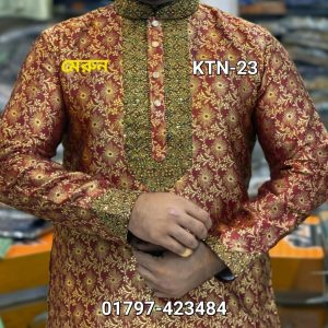 লাক্সারি কাতান পার্টি শুধু পাঞ্জাবি= KTN-23 (মেরুন)