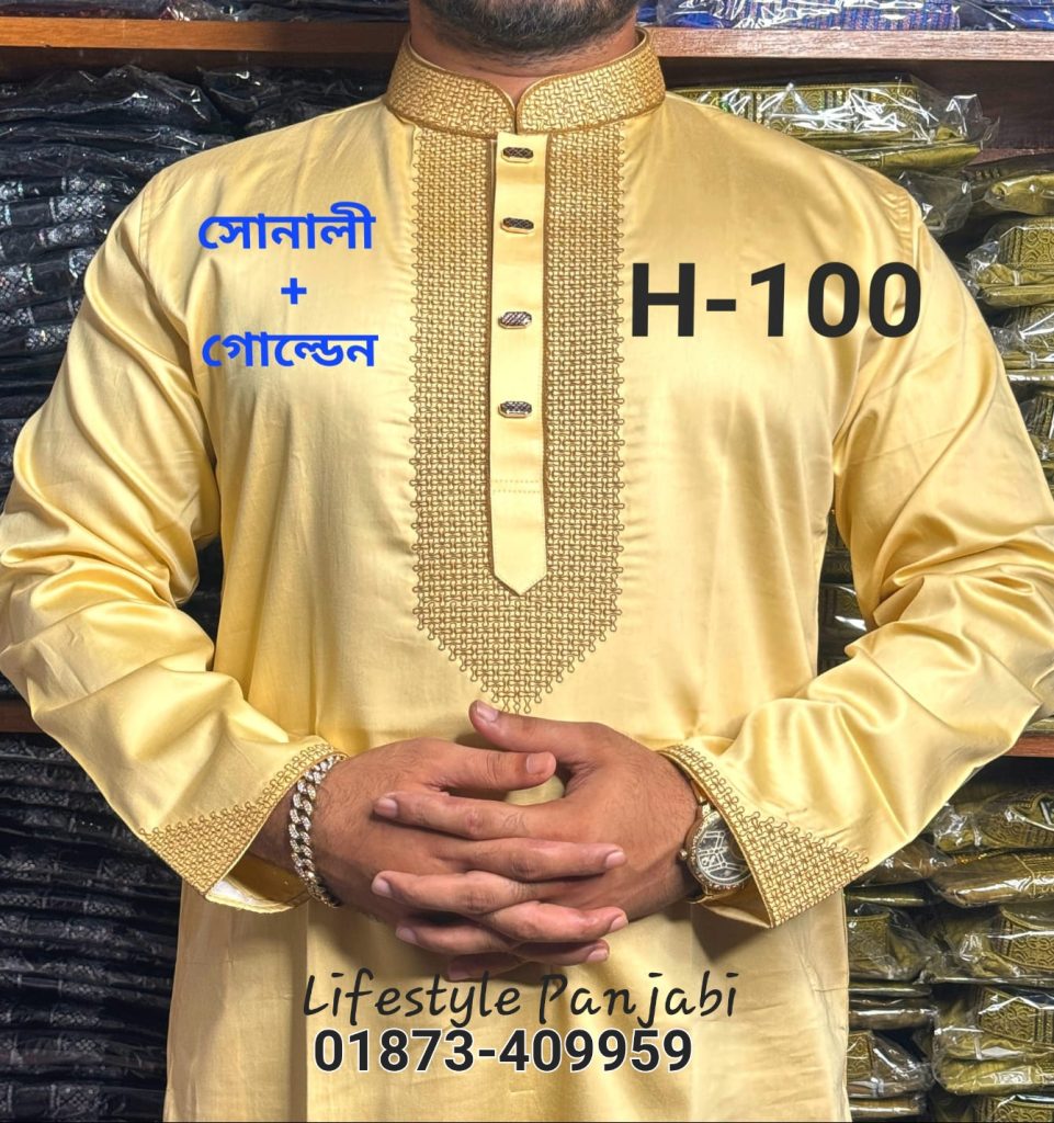 কুচিকাটা এমব্রয়ডারি পাঞ্জাবি H-100 (সোনালী/গোল্ডেন)
