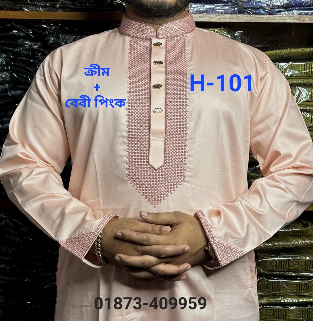 কুচিকাটা এমব্রয়ডারি পাঞ্জাবি H-101 (ক্রিম/ বেবী পিংক কালার/