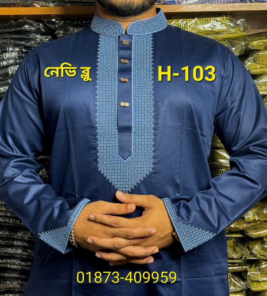 কুচিকাটা এমব্রয়ডারি পাঞ্জাবি H-103 (নেভি ব্লু)