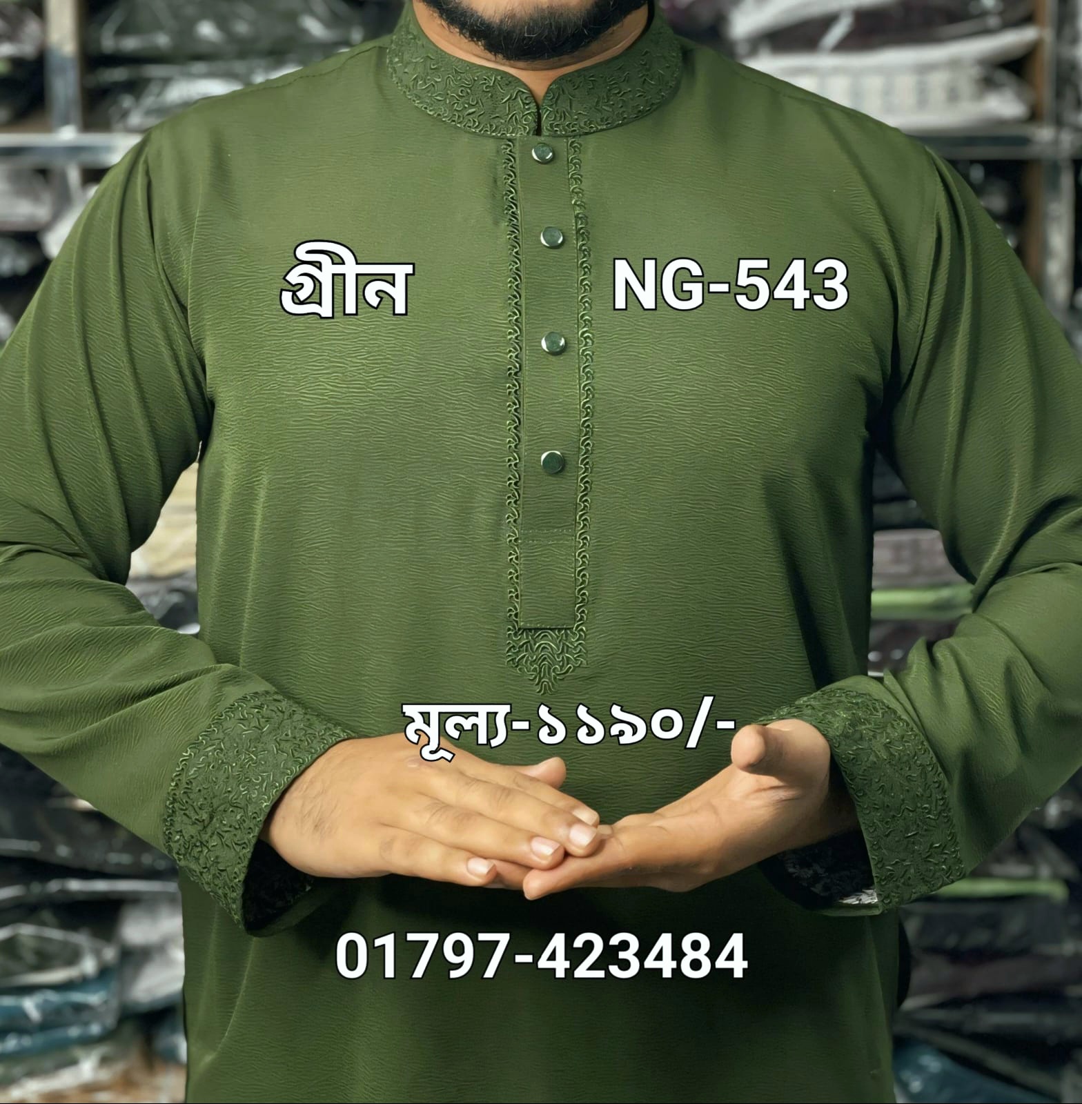 চায়না জাফরান স্ট্রিচ পাঞ্জাবী=NG-543 (গ্রীন কালার)