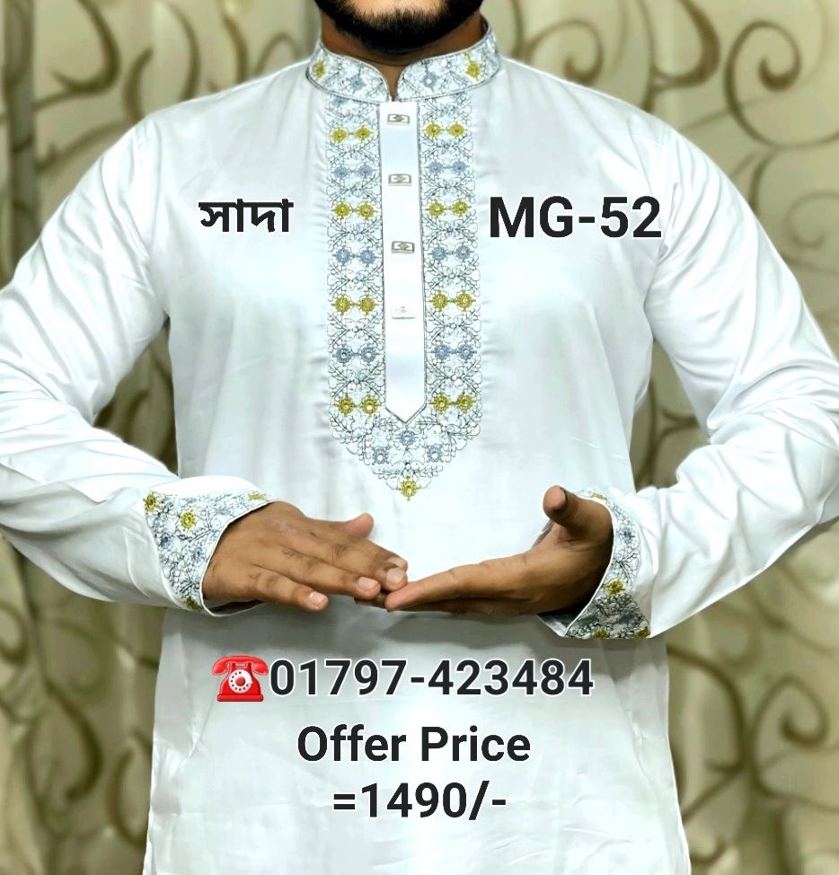 মাল্টি সিকোয়েন্স কটন পাঞ্জাবী= MG-52 (সাদা)
