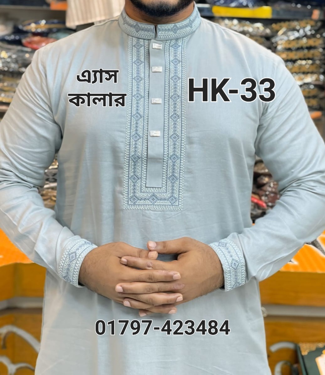 সিল্ক কটন কফ হাতা পাঞ্জাবী= HK-33 (এ্যাস কালার)