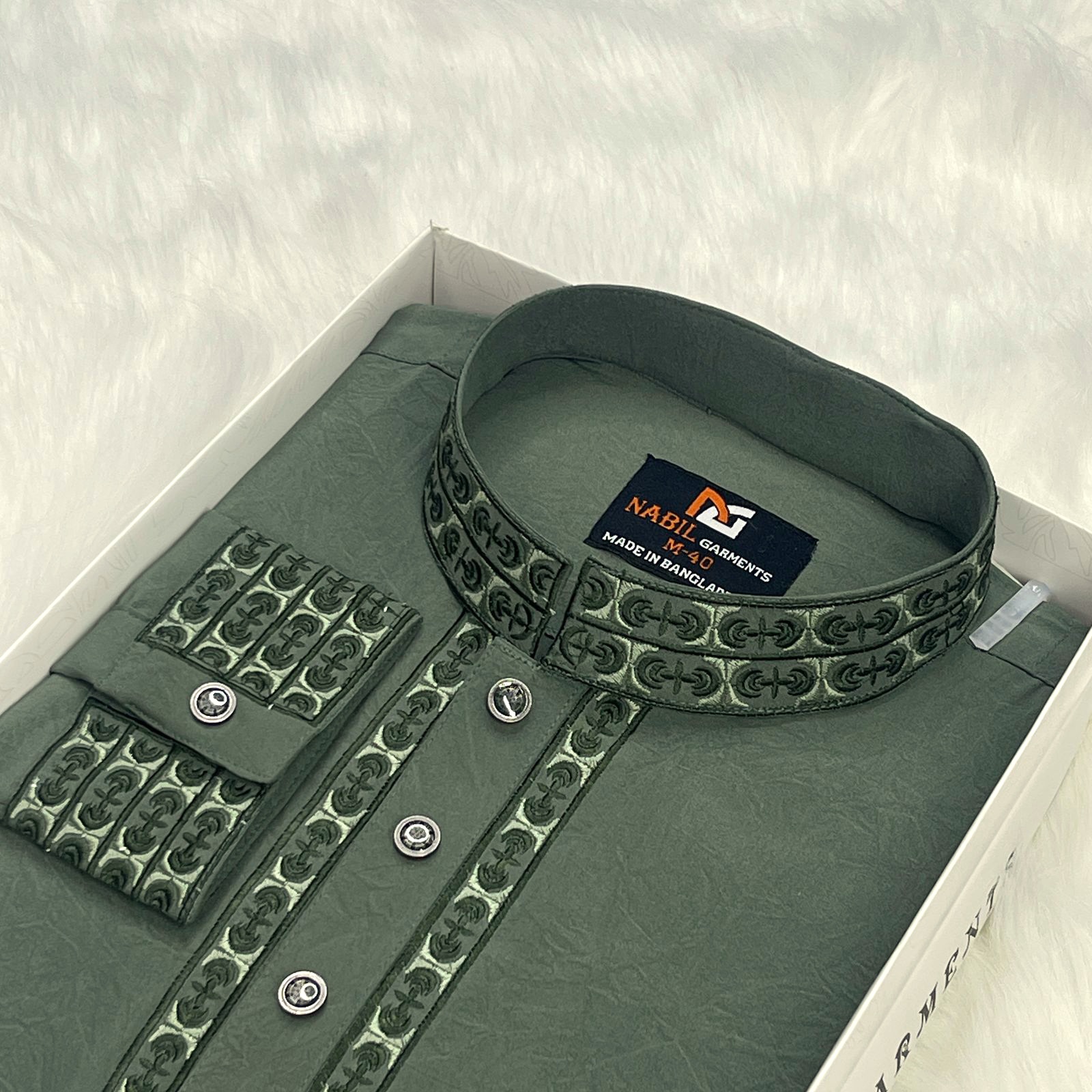 স্ট্রিচ কটন কফ হাতা পাঞ্জাবী= NG-404 (লাইট অলিভ)