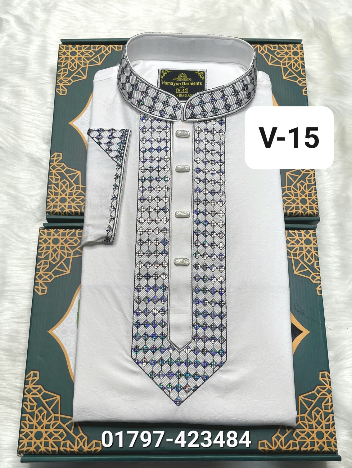 স্ট্রিচ ভাঙচুর কটন পাঞ্জাবি =V-15 (সাদা কালার)