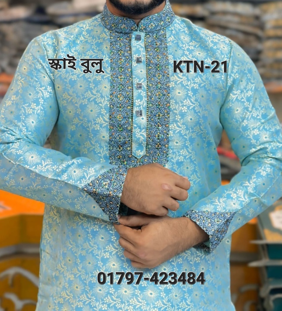 লাক্সারি কাতান পার্টি শুধু পাঞ্জাবি= KTN-21 (স্কাই ব্লু)